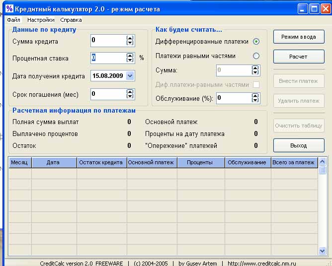 Version 1.5.1 ------------------ - Внесены изменения для параметра "обслуживание". Можно выбрать % - с суммы кредита или с остатка. - Небольшие изменения в интерфейсе.